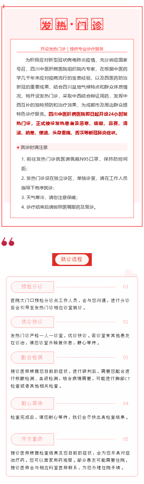 通知!四川中医肝病医院开设发热门诊,满足患者就医需求
